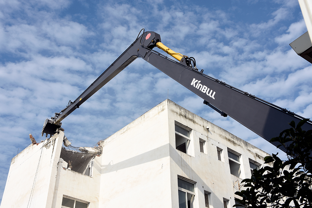 日前,勤牛最新研發(fā)的36T兩段式加長(zhǎng)臂履帶式挖掘機(jī),迎來(lái)了出產(chǎn)以來(lái)的首次實(shí)地作業(yè)。高帥如它,未負(fù)重托,以相較普通挖掘機(jī)一倍增速的效率,圓滿完成了辦公樓的拆解任務(wù)。 現(xiàn)場(chǎng)見(jiàn)證,超長(zhǎng)型加長(zhǎng)臂矯健靈活、升級(jí)版斗桿伸縮自如、加強(qiáng)型挖斗強(qiáng)悍有力,強(qiáng)強(qiáng)聯(lián)合,無(wú)需移動(dòng)便可輕松解體遠(yuǎn)處建筑物,作業(yè)時(shí)間大大縮短,施工效率倍速提高;搭配力學(xué)性能可靠的穩(wěn)重機(jī)身,安心又舒適;此外,加長(zhǎng)臂能夠更好的對(duì)駕駛?cè)藛T起到保護(hù)作用,有效防止重物墜落砸傷作業(yè)人員。此次小試牛刀,該機(jī)高效、便利、環(huán)保、安全等優(yōu)勢(shì)凸顯。一舉數(shù)得,勤牛加長(zhǎng)臂助您事業(yè)騰飛一臂之力!