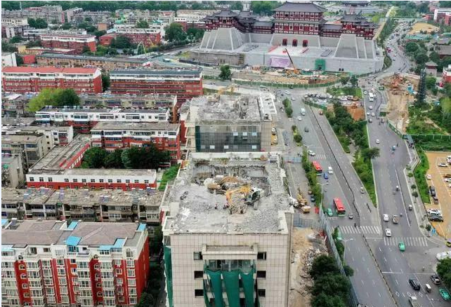 有網(wǎng)友指出:“無聲爆破這么先進(jìn),為啥還用這種老舊方式拆除呢?“小編覺得可能是因?yàn)樵摋潓懽謽蔷嚯x隋唐洛陽城國家遺址公園應(yīng)天門博物館幾百米,地方政府考慮到安全問題,所以才不爆破吧。